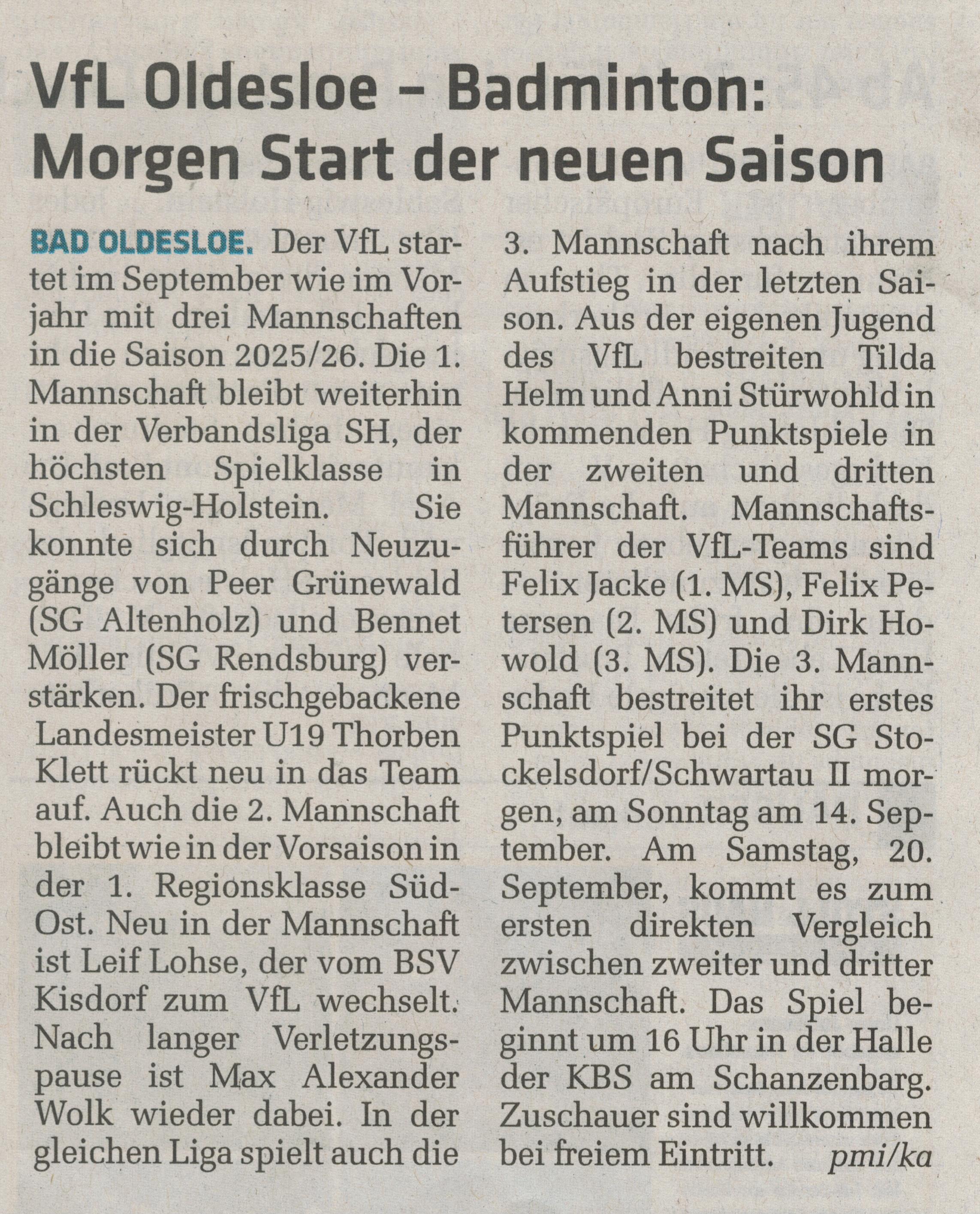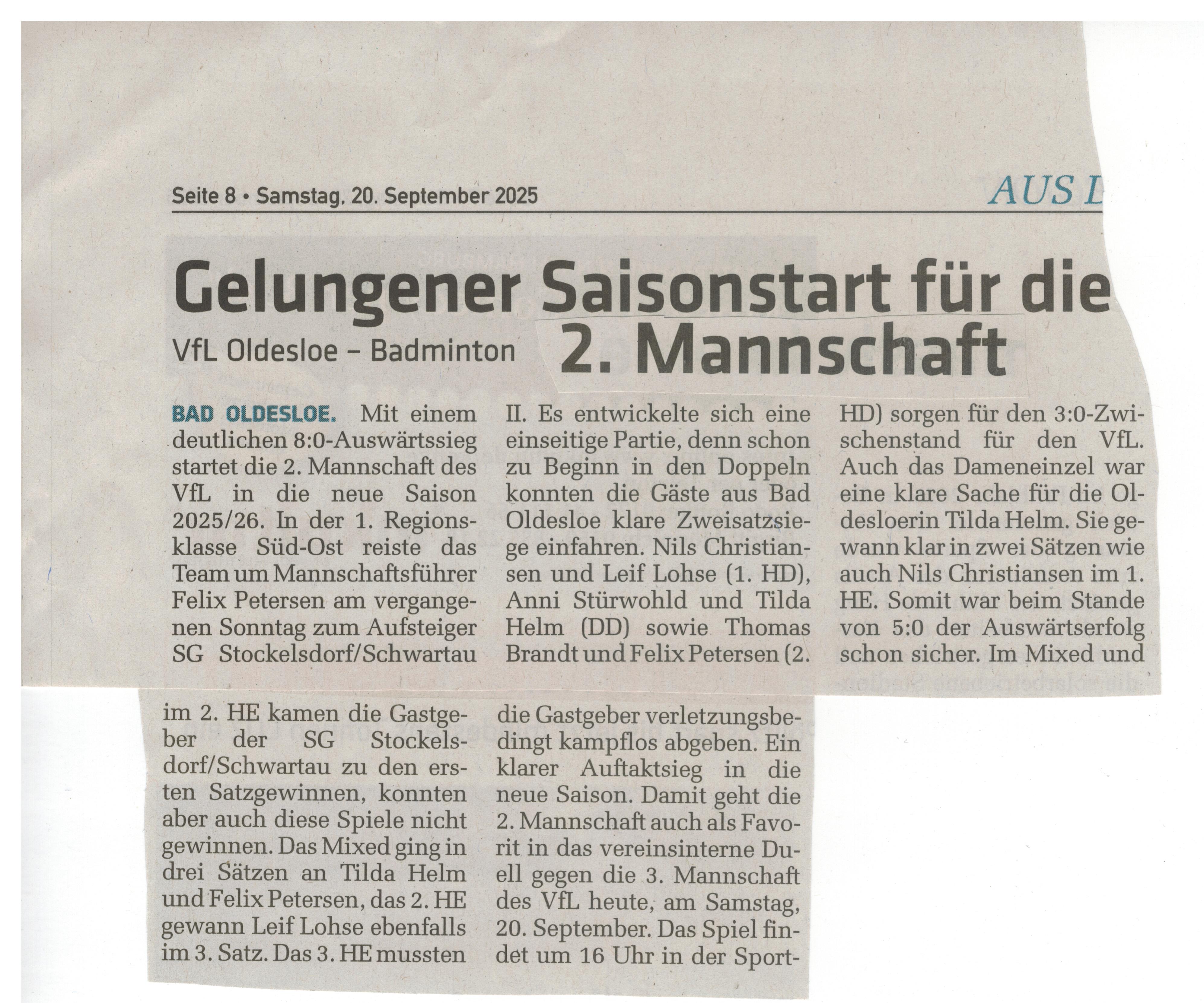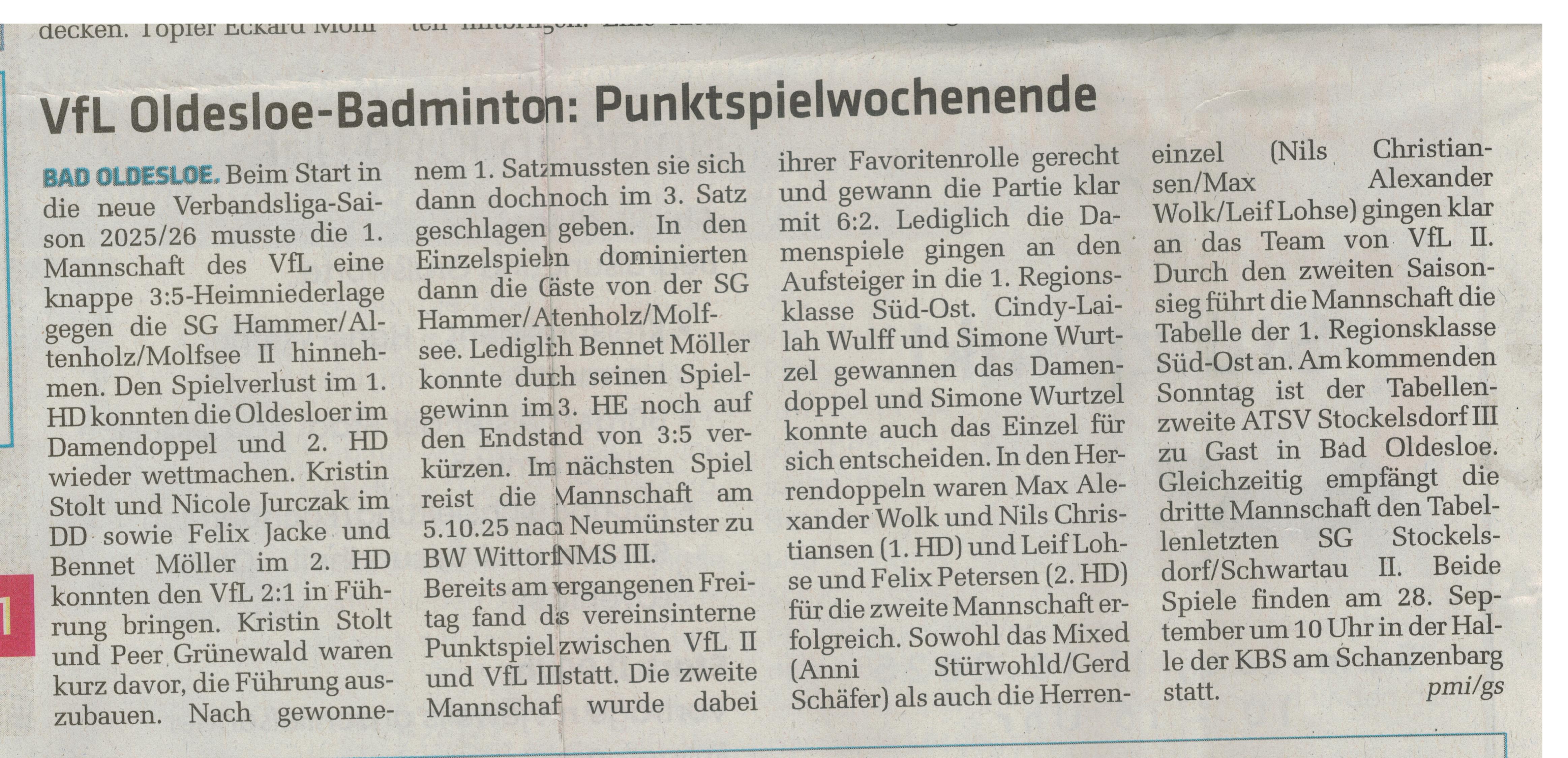 Bericht vom Punktspielwochenende 20./21.9.2025